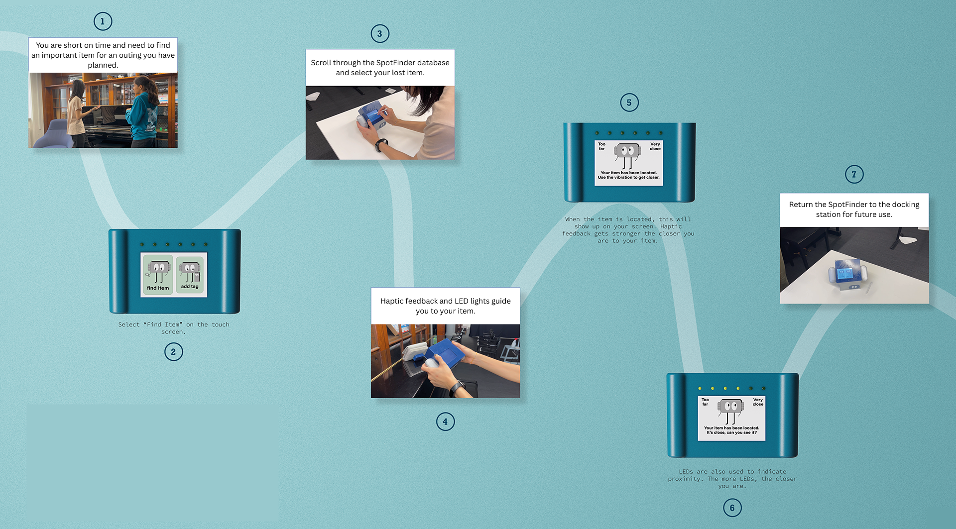 SpotFind is a smart tag-tracker designed to help carers keep track of core items. Focused on an underserved group, it alleviates the pain points they face around keeping a clean home while managing complex caregiving tasks.